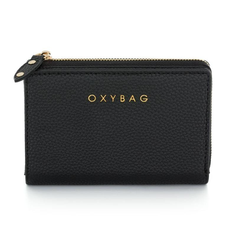 Smaller ladies' wallet in black design. Inside, there are 10 smaller pockets for loyalty cards, 1 larger pocket, 1 separate compartment for cash, and a separate zippered pocket for coins.
