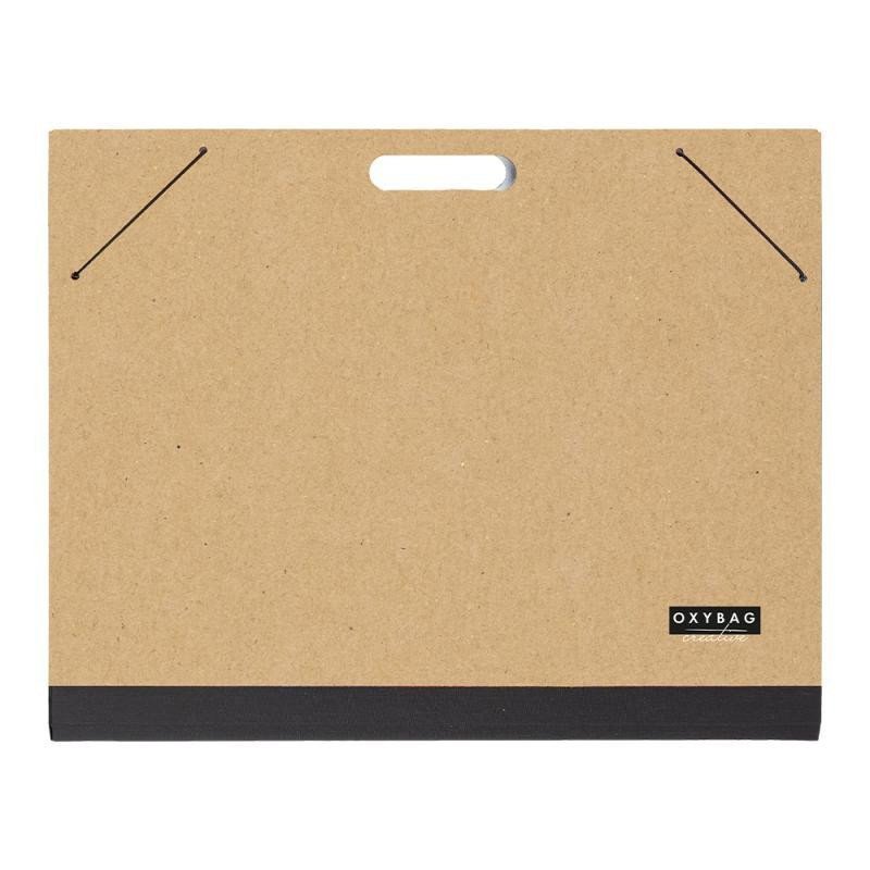 Laminated boards for drawings in A4 format for easier storage and transport of drawings. There is a cutout in the middle for grip, and it closes with a rubber band. Inside, there are corners to hold A4 drawings.