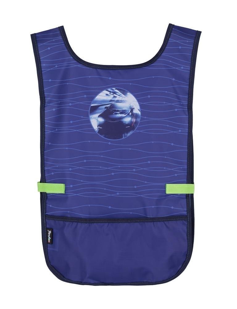 Pony apron for art classes or other creative activities. It slips over the head and has Velcro closures on the sides. One spacious pocket in the front. Material 100% polyester.