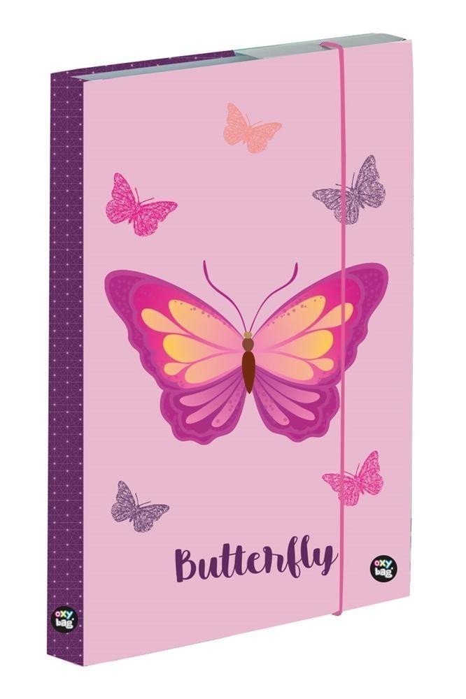 Favorite box for A5 notebooks. An essential part of every student's equipment for storing notebooks, papers, and other school supplies. Durable material - laminate, protects against damage. Elastic closure. Spine width 3 cm.