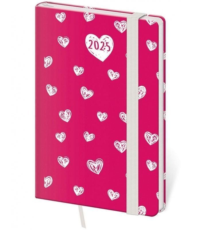 Diář 2025 Vario týdenní kapesní Hearts s gumičkou