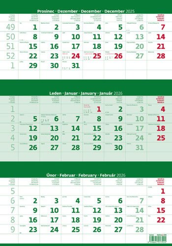 Kalendář nástěnný 2026 - Tříměsíční zelený