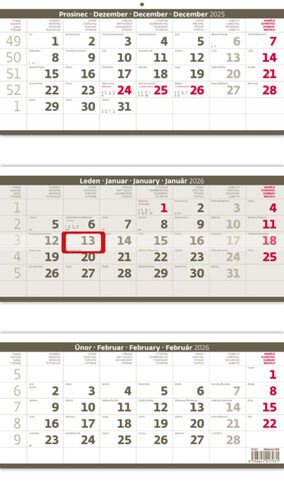 Kalendář nástěnný 2026 - Tříměsíční skládaný šedý