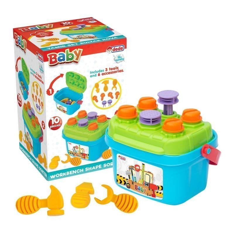 The shape sorter contains a set of basic shapes that children must place into the correct holes on the lid of the suitcase. With the shape sorter, children can learn to recognize new shapes and colors. The product encourages fine motor skills and hand-eye coordination. The package dimensions are 150x150x240.