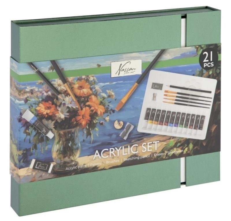 The beautiful gift packaging contains everything needed for painting with acrylic technique. A great gift for creatives.