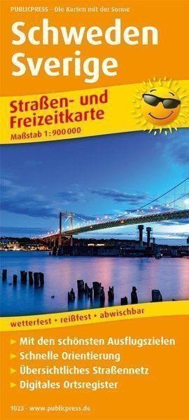 A road and leisure map for Sweden featuring tourist routes, highlights in the region, and parking spots for recreational vehicles. Quick orientation through the Clear Road Network. In the proven quality of public printing: weather-resistant, tear-resistant, labeled, and durable.