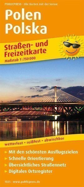 The road and leisure map for Poland includes tourist routes, highlights in the region, and parking spots for recreational vehicles. Quick orientation through the Clear Road Network. In proven public printing quality: weather-resistant, tear-resistant, labeled, and shockproof.