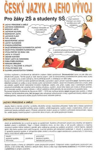 A set of characters and rules regarding their use is called a language. The publication deals with language communication, culture, standard and non-standard language, and the development of the Czech language.