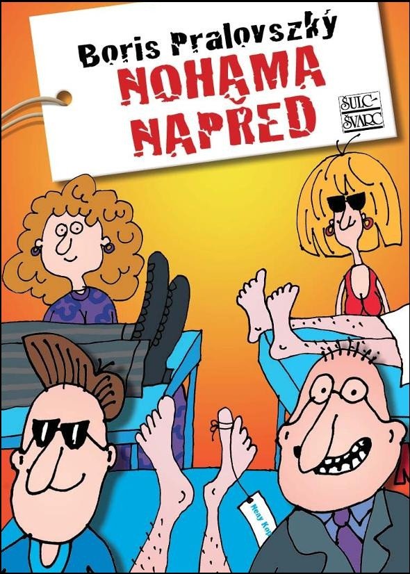 The novel takes place in a funeral home, where no light-hearted joking belongs, yet the Horáček family attracts comedic situations like a magnet, and they manage to absurdly turn every disaster into a victory, precisely according to the rule that life should not be taken too seriously, as it will end up in a cemetery anyway. Boris Pralovský's dark humor is both harsh and tender, just like his illustrations for the book, and the reader's laughter always liberates them when the plot suddenly spirals out of control and the main characters find themselves in an unsolvable situation. Boris Pralovský is a renowned caricaturist, author of humorous books for children and their parents, illustrator, co-author of musicals, and thick vegan cookbooks that cannot yet be published due to trade secrets. Thus, his first major book of standard length with a considerable number of illustrations is the novel "Nohama napřed."