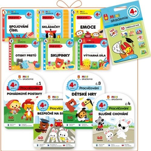 MINI Academy is a comprehensive modern learning system developed by experts in preschool education. It consists of three learning packages for three age groups: for two-year-olds, three-year-olds, and four-year-olds. The main feature is the understandable content that guides the child from their first attempts at drawing to independently solving various activities. All three levels consist of six activity books and four workbooks with stickers. The activity books introduce children to new activities, and the workbooks help reinforce knowledge.
