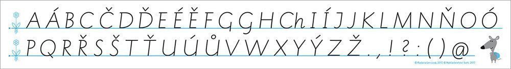 Bookmark with the Comenia Script alphabet for 2nd grade of elementary school. It contains shape variants of letters and digits.