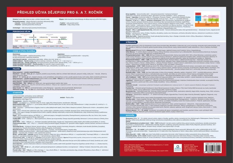 Clearly structured history material for the 6th and 7th grades for easy memorization of the basic explanatory content, developed in accordance with the RVP ZV. The card includes topics: Prehistory, Antiquity, the Middle Ages, and Modern History. The overview table is primarily intended for students in the second stage of elementary school.