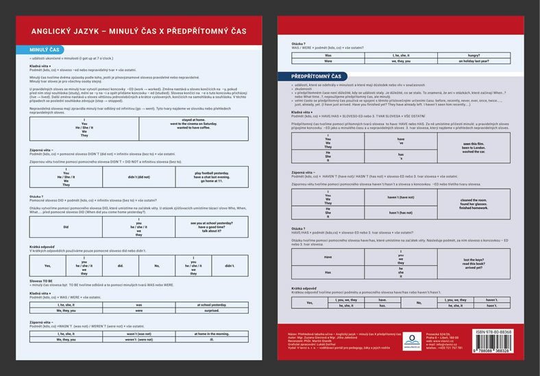 Anglický jazyk - Minulý čas X předpřítomný čas - Přehledová tabulka učiva – Gieciová Zuzana (2020)